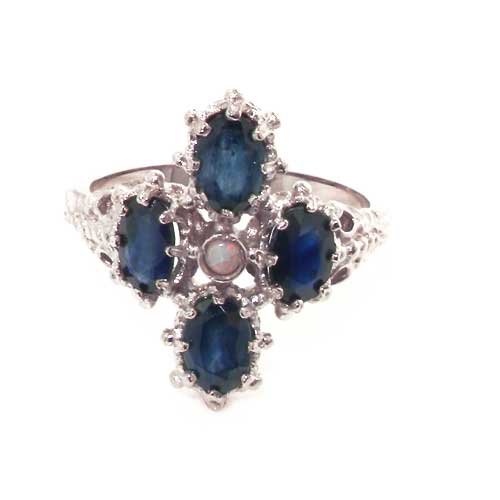 Check Out 14K Solid English White Gold Ladies Fiery Opal & Blue Sapphire Ring - Finger Sizes 5 to 12 Available - Ideal for Special Birthday, Anniversary, Valentines Day or Mothers Day Gift
